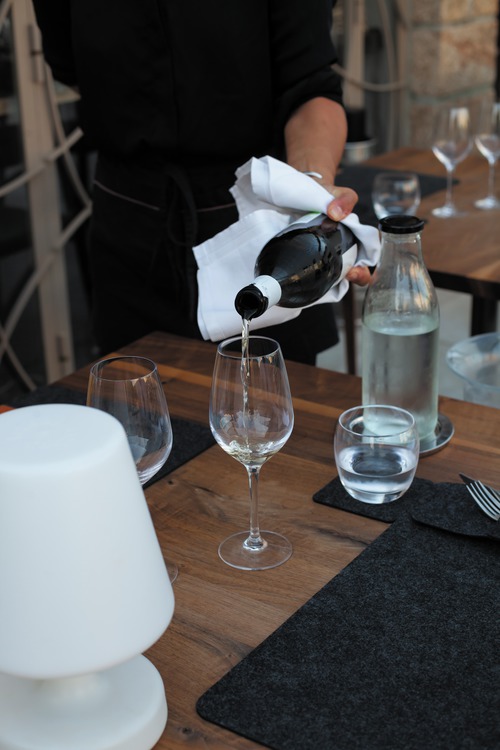 jeunes mariés: coupe de champagne offerte au restaurant.
