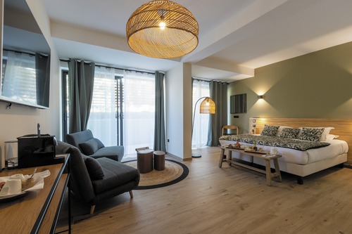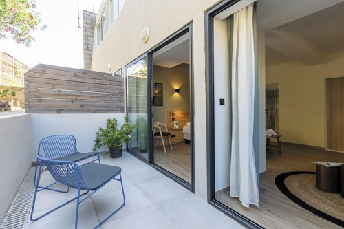 14 chambres et 2 suites, en toute simplicité, avec un confort moderne et fonctionnel. Elles sont côté jardin ou côté mer. Pour max. 2 personnes: chambre standard côté jardin (18 m², lit double, entièrement rénovée), chambre confort côté mer (18 m², lit double et grande terrasse meublée) ou une chambre balcon vue mer (18 m², lit double, 2ème étage, balcon meublé et vue mer). Pour max. 2 adultes et 2 enfants: suite côté jardin (36 m², lit double et 2 sofas convertibles, douche à l'italienne et bain à bulles, terrasse de 10 m² meublée). Machine Nespresso dans toutes les chambres.