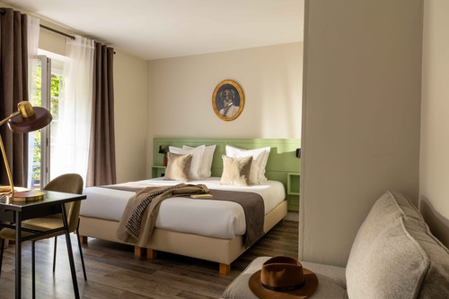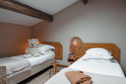 27 chambres, spacieuses et lumineuses, aménagées avec beaucoup de confort, certaines avec terrasse. Au choix: classique (18 m², max. 2 pers.), mezzanine (30 m², max. 4 pers., grand lit au rez-de-chaussée et 2 lits jumeaux au 1er étage, prix du lit suppl. adulte: € 68 petit déj. incl.), ou communicante (40 m², max. 2 adultes et 2 enfants). Produits d'accueil dans toutes les chambres.