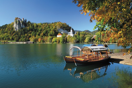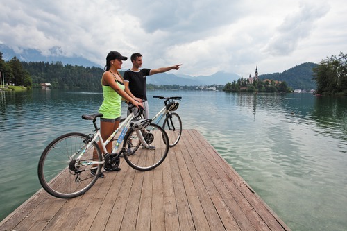 Plus encore que la ville, le lac du même nom, avec en son centre, une petite île abritant une église, l'image la plus emblématique de la Slovénie. Pour accéder à l'église, il faut gravir un escalier raide de pas moins de 99 marches. Le marié est donc de préférence sportif. Un bateau typique de Pletna vous y emmènera. Vous pourrez également profiter d'un beau panorama sur les alentours depuis le château situé sur un haut rocher.