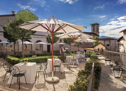 uitgebreid ontbijtbuffet met zicht op de binnentuin. Groot terras boven de tuin met adembenemend uitzicht. Bij zonsondergang is het hier heerlijk vertoeven met een aperitiefje. Restaurant Vespasia, bekroond met 1 Michelin en 1 Michelin Green Star (dagelijks geopend voor diner behalve op woensdag, vooraf reserveren is noodzakelijk). Kleine spa met kruidenbiosauna, stoombad, voetbad en belevenisdouches (gratis). Massages en behandelingen (betalend). Activiteiten (betalend, op aanvraag): truffeljacht, wijn- en olijfoliedegustaties, kooklessen, ricotta workshop, geleid bezoek aan een kasjmiertextielfabriek, rafting, elektrische fietsen, mountainbike en gravelbike. Gratis publieke parking op 350 m.