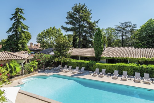in een rustige, residentiële wijk met veel groen, op amper 15 minuten rijden van de stad Avignon (3 km). Villeneuve-lès-Avignon situeert zich strikt genomen in de regio Languedoc-Roussillon (want aan de andere kant van de Rhône gelegen), maar heeft een puur Provençaalse uitstraling en karakter. Het hotel wordt gedomineerd door het fort Saint André, van waaruit u een subliem panoramisch uitzicht heeft op Villeneuve, Avignon, de Rhônevallei en daarachter de Mont Ventoux en de Alpillen. Bezoek in de streek onder meer Orange (op 30 km), Arles en Nîmes (beide op zo'n 40 km), iets verder Marseille (op 105 km),...